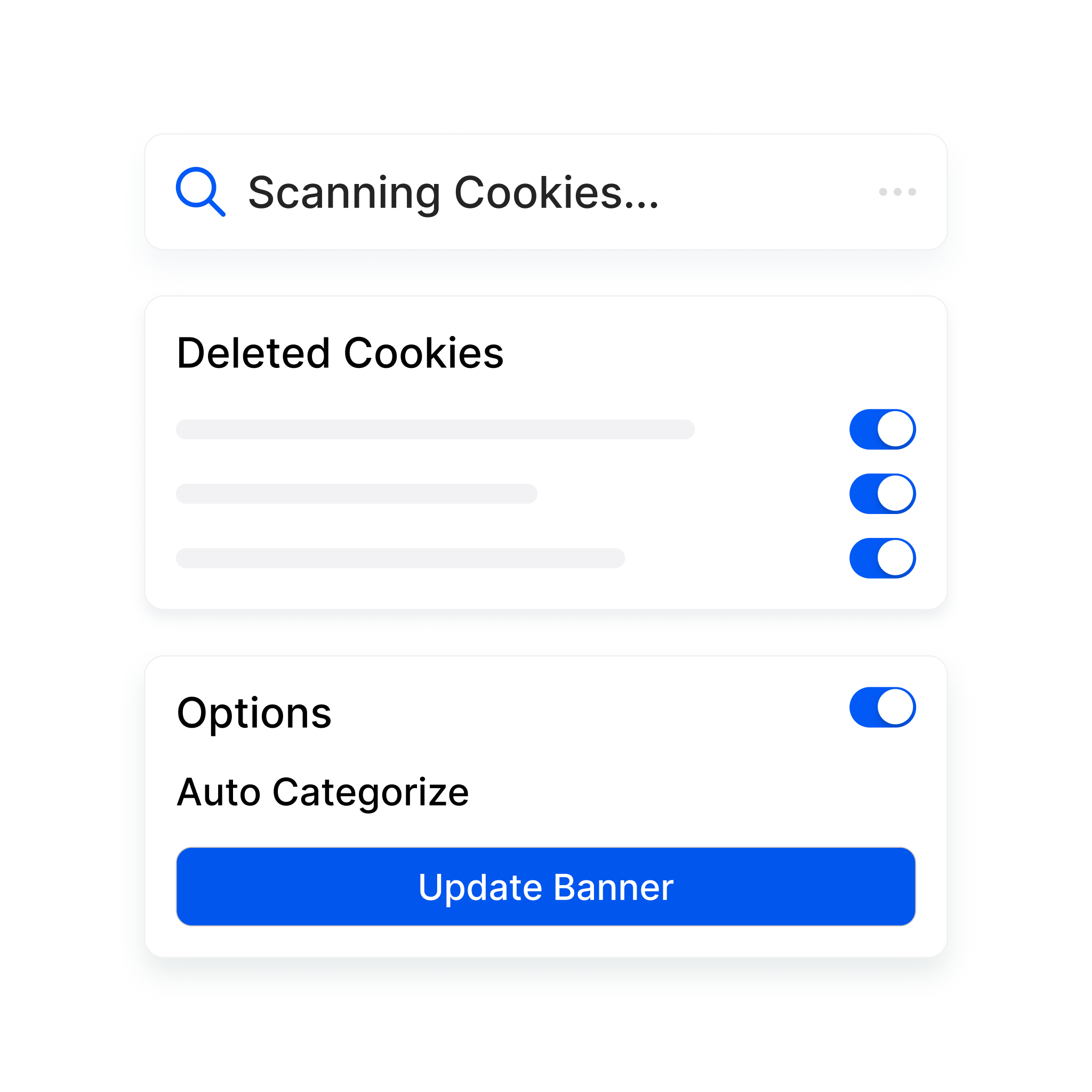 Consently crawls your site on install, detects all cookies, and updates the banner categories automatically without any extra maintenance.